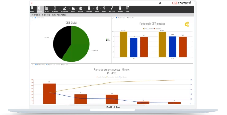 No más conjeturas sobre lo que está afectando la productividad. oeeanalytics permite analizar la forma de las pérdidas, dónde y cuándo ocurren y su correlación con algunas de las principales variables (puesto de trabajo, producto, operador, etc.).